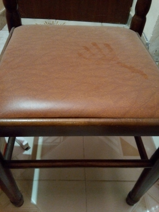 Seguono le due foto dell’impronta non più visionabile perché si è accidentalmente rovinata con lo smalto durante la purificazione della carta da parati della stanza dove si trova la sedia.