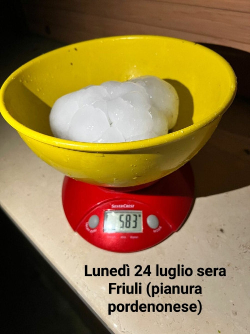 A fine documento sono allegate due foto di pesanti chicchi di grandine caduti nel nord Italia a luglio del 2023.
