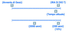 Se consideriamo una percentuale di incidenza del 10% del tempo che potrebbe passare sui 2000 anni otteniamo un tempo di 200 anni, cioè due generazioni, ma prima abbiamo detto che tutte le sventure predette dovevano accadere nell’arco di una generazione, già passata, nella quale la profezia si è avverata. Stando a questo, come potrebbero ancora passare altre due generazioni? E poi, una percentuale del 10% è anche molto bassa e questo ci fa dire che siamo davvero in vista del giorno del Signore. Guardando il seguente grafico ci rendiamo conto ancora meglio: